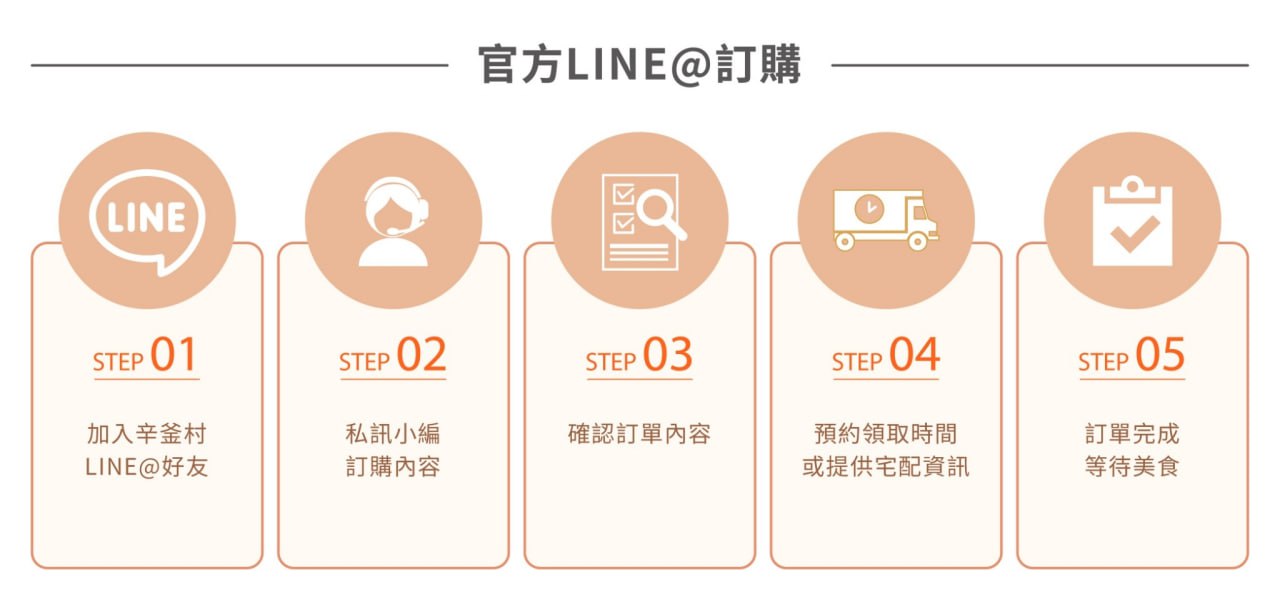 商品的訂購方式有哪些?官方網站直接下單或加入辛釜村官方LINE@ (@sv2022)私訊訂購。